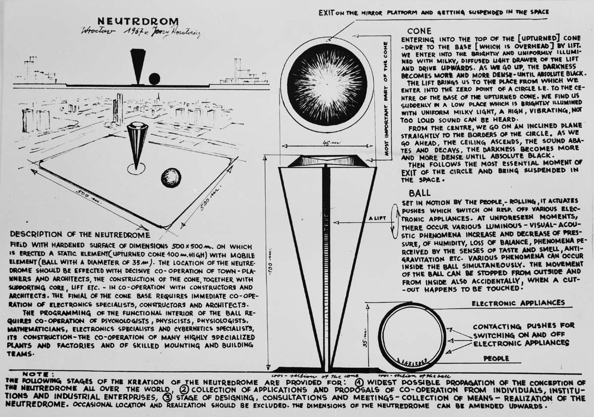 Others saw different promises in technology. At the end of the 1960s Jerzy Rosołowicz in Wrocław, Poland, promoted his concept of the Neutrdrom.