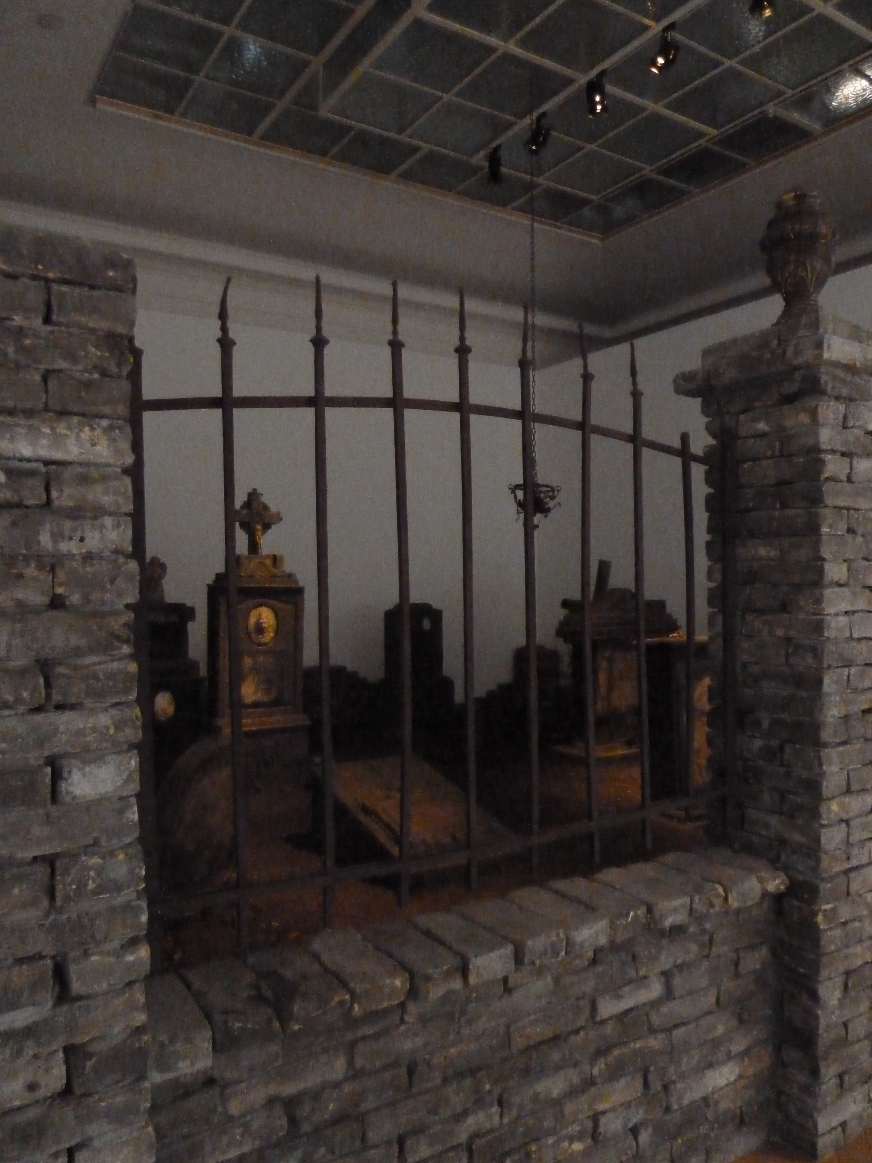 With its singular aspect and illusionary form, Kuśmirowski’s cemetery is more like a set in a theatre than a historical monument. The drama taking place on his stage is not, however, identified. Rather, such works testify to the artist’s interest in casting history into the present. His work often creates unexpected folds in time. ‘Despite its Baroque headstones and dusty inscriptions, Kuśmirowski’s necropolis was highly topical at the time of its making. The status of the dead was placed centre-stage by the rise of right-wing politicians, mostly associated with the PiS (Prawo i Sprawiedliwość / Law and Justice Party), in the early years of the twenty-first century. In their march on power, the late president Lech Kaczyński, who led the party with his twin brother, Jarosław Kaczyński, the prime minister until 2007, presented themselves as defenders of the nation, both living and dead, and of historical memory. As mayor of Warsaw in the early 2000s, Lech Kaczyński was, for instance, the driving force behind the creation of the Warsaw Uprising Museum. This new institution opened its doors to the public in July 2004, three months before Kuśmirowski’s D.O.M. was exhibited in the city. It uses a panoply of affective, immersive and interactive techniques to produce ‘prosthetic memory’, that is to say, ‘memories of a past through which they [visitors] did not live’.[5] Visitors experience a spectacular and supercharged experience of Warsaw in the grip of the Second World War. The route through the museum is presented as a vertiginous free fall through history to enter the cosmos of martyrs and saints, the men and women who fought and died in 1944 to save the city. Amplified sounds of beating hearts, marching boots and gunfire ring through galleries; visitors can pass through a 25-metre-long sewer, like an insurgent during the Uprising. The shallow graves of insurgents are set into glass floors.