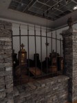 Kuśmirowski is a master of illusion, as this and his other reconstructions demonstrate. They include a subterranean bunker in London (at the Barbican Art Gallery, 2009); the Unabomber’s cabin (Unacabin, 2008), from which Ted Kaczynski planned his campaign of terror against universities and airlines in the USA between the mid-1970s and mid-1990s, and the kind of railway wagon used by the Third Reich to transport its victims to Auschwitz-Birkenau (Wagon, 2006). These artefacts are not as authentic or as historic as they seem on first inspection. Walking through the bunker, the viewer can inspect the trompe l’oeil techniques used to transform plaster into stone or MDF into concrete. Similarly, the D.O.M. installation’s graves and cemetery walls, for instance, have been fashioned from card and styroboard. The rough stonework and weathered bricks look incongruous and strangely out of time in the neutral white cubes where ‘D.O.M.’ has been exhibited. Like a melancholic artwork allied to the genre of vanitas painting (a genre which owes its name to the Latin word for ‘emptiness’), Kuśmirowski’s graves and tombstones are literally hollow.