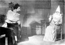 Jerzy Grotowski suggested something similar when his Laboratory Theatre of 13 Rows (Teatr Laboratorium 13 Rzędów) produced a new version of Słowacki’s Kordian in Opole in February 1962. This proto-psychological study of the hero was reinterpreted as a study of human behaviour. Altering and abridging the original drama to focus on one scene, he turned the entire theatre into an asylum. Breaking the divide between stage and auditorium, the audience joined the performers by sitting on the steel-framed beds. They were bullied by a white-suited doctor wielding a cane, and forced to hum along with the actor/patients. In the performance, this evil physician transmutes, first becoming the Pope, then the Tsar and finally an old sailor as the audience shares Kordian’s hallucinations. As Grotowski put it in 1963, ‘The role of psychiatric patients is thrust on every member of the audience, not just the actors…. The actions of Kordian become the collective hallucinations of all the people who are ill.’[16]