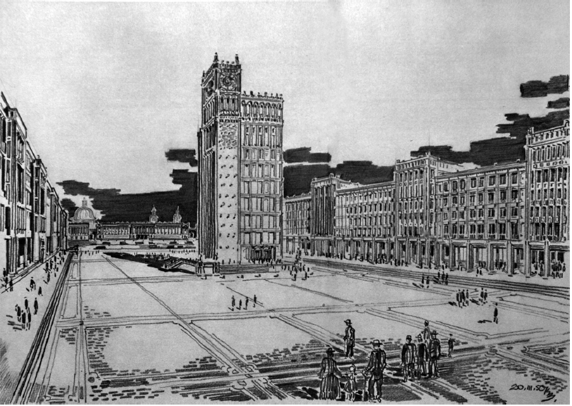 The fact that these towers to socialism were dressed in retrospective garb – derived in the Soviet manner from various ‘progressive’ periods in Polish architectural history – did not diminish Dybowski’s claims about the novelty of the people’s cityscapes.[3] His words served what Boris Groys later defined as the posthistorical character of Socialist Realism: ‘According to Stalinist aesthetics, everything is new in the new posthistorical reality … There is no reason to strive for formal innovation, since novelty is automatically guaranteed by the total novelty of superhistorical content and significance. Nor does this aesthetics fear charges of eclecticism, for it does not regard the right to borrow from all ages as eclectic; after all, it selects only progressive art, which possess inherent unity … Socialist Realism as a whole … could be considered eclectic only by an outside, formalistic observer who sees nothing but combination of styles and ignores the high ideological qualities and “popular spirit” that unite them.’[4]