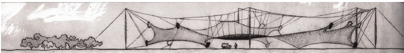 Hansen’s theory offered new ways to conceptualise architecture. Buildings designed as ‘open forms’ would be positively ‘incomplete’, leaving opportunities for occupants to shape their environment in meaningful ways. Promising universal application, Hansen saw it as a way of thinking about public memorials, housing estates as well as temporary events and exhibitions. One year after publishing his theory, Hansen designed the ‘Moje Miejsce, Moja Muzyka’ (‘My Place, My Music’) pavilion for the Międzynarodowy Festiwal Muzyki Współczesnej (International Festival of Contemporary Music), an important new forum for avant-garde composers. Working with Józef Patkowski, a pioneer of electronic music, Hansen experimented with the ‘spatiality of music’ – what he called an ‘audiovisual space-time’. A large fabric structure, like a shirt with sleeves, each equipped with a speaker at its end, would be suspended in a park. Viewers were to be encouraged to move through the space. In Hansen’s words ‘each could walk their chosen path in relation to the music – almost as if they owned it … the spatial relativity of the music’s reception brought the listener closer to an intimate experience of it … integrating sound with the listeners’ movements as well as with the trees and clouds’.[40] Here was a playful view of experience that unhinged the architecture of leisure from its supporting role in the reproduction of labour or the promotion of socialist modernity.
