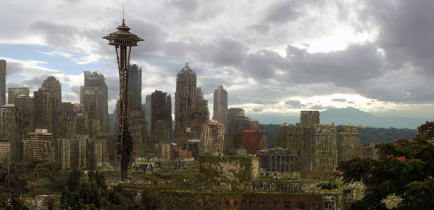 In the programme some unexplained and comprehensive disaster has befallen mankind and the planet returns rapidly to a natural condition. The programme’s CGI animators took evident pleasure in predicting the fate of a number of icons of modern architecture including Foster Associate’s Swiss Re HQ in the city of London, Pierre Koenig’s steel and glass Stahl House perched in the hills above Los Angeles and Jørn Utzon’s Sydney Opera House. Without maintenance, what Foster likes to call ‘London’s first ecological tall building’ will exist for three-hundred years as a vertical jungle – a truly green building – before its topples. With the reasons of the disaster unclear, the viewer is left to infer that the event which removed people from the planet is man-made.