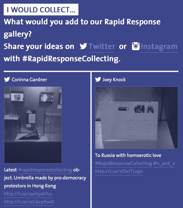 One of Long’s first contributions to life at the V&A was to write – with other colleagues – ’95 Theses’ about how museums ought to approach their role in the twenty-first century. A knowing echo of Martin Luther’s attack on the Catholic Church in 1517 which kick-started the Protestant Reformation, Long set out to prompt self-reflection on the part of the V&A – a monumental institution with more than 2.5 million objects in its collections and 800 members of staff, many of whom are world-leading specialists in their fields. Rapid Response Collecting is a demonstration of a good number of Long’s theses – including the proposition that ‘Museum curators have as much in common with investigative journalists as they do with university academics’ and that ‘Ugly and sinister objects demand the museum’s attention just as much as beautiful and beneficial ones do.’
