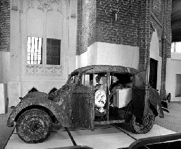 A landmark exhibition, ‘Nature. Environment. Man’ planned by artist Ojārs Ābols but mounted after his death in St Peter’s Church in Riga in spring 1984 featured artworks not only by modernists like Celms but also those of a new generation of artists who addressed environment in very different terms: Indulis Gailāns’ ‘Fence Action’ was, for instance, a timber, whitewashed fence to which enigmatic messages scrawled on paper were nailed whilst Andris Breže (with Andra Neibuerga and Valdis Ošiņš) installed a putrefying Moskvich 401 car in which ghostly plaster figures were taking a ‘Journey to the Countryside’.[8] Grass grew under its bonnet. In a new-found orientation to the past and to the countryside, these works anticipate the politics of ecology, memory and national revival which were to shape Latvian intellectual life in the late 1980s.