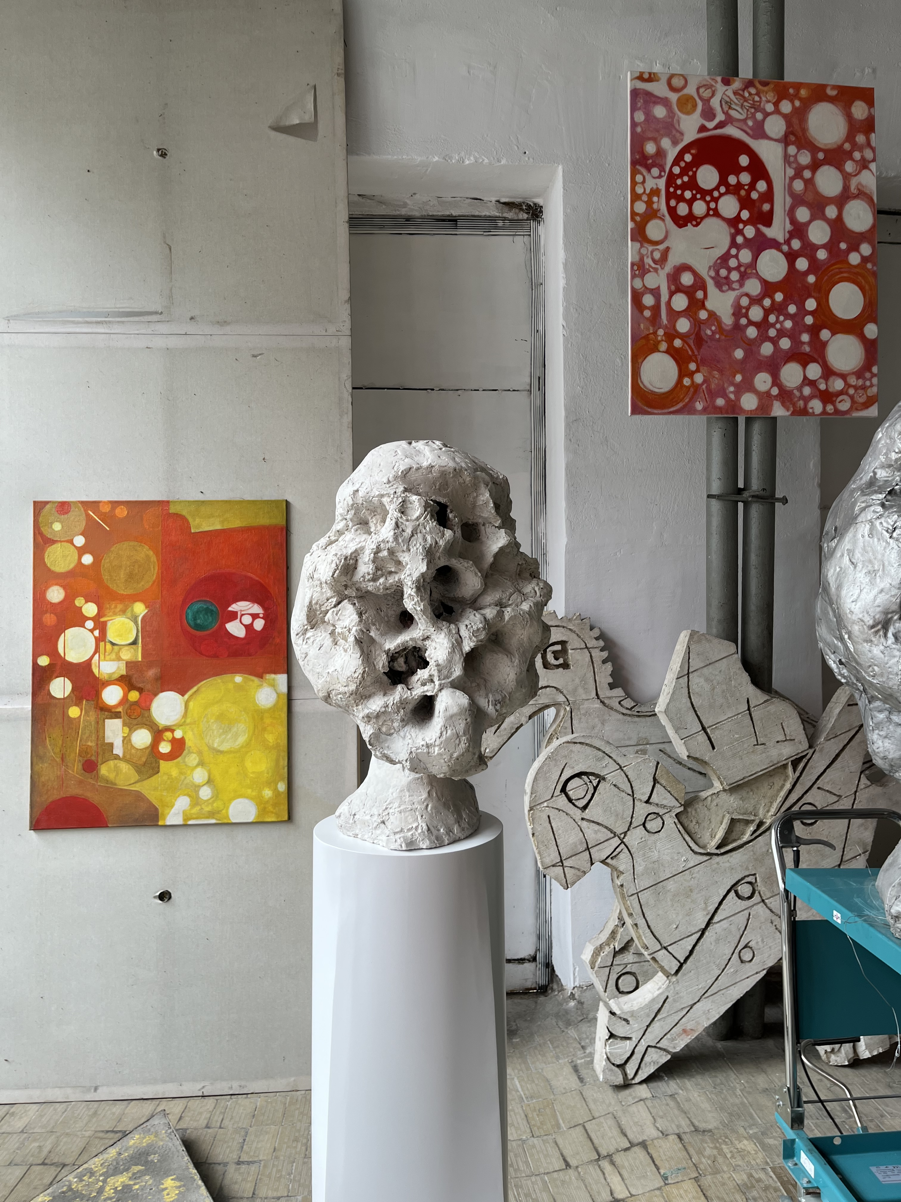 My photograph was taken in Czełkowska’s studio, an industrial workshop in the suburbs of Warsaw which is maintained by her estate and still contains much of her work including many of the heads for which she is best known. But the studio contains much more, not least wonderfully spare abstract drawings and some of her early figurative sculpture. The experience of seeing her art in the setting where much of it was made was a thrill. Much of Czełkowska’s ouput is little understood and the Muzeum Susch show – along with a Krolikarnia retrospective in 2017 – will do much to encourage new thinking about her art.