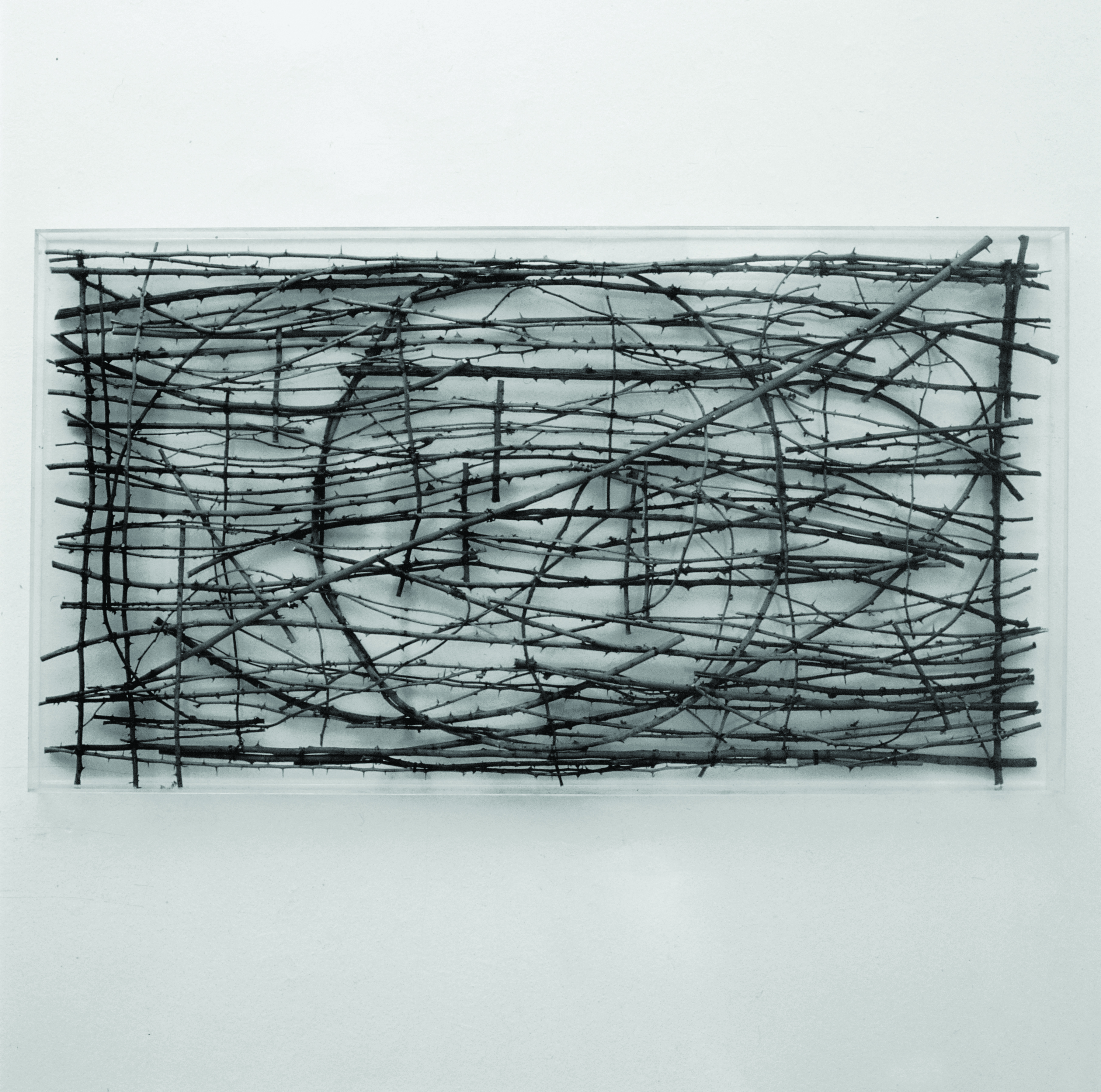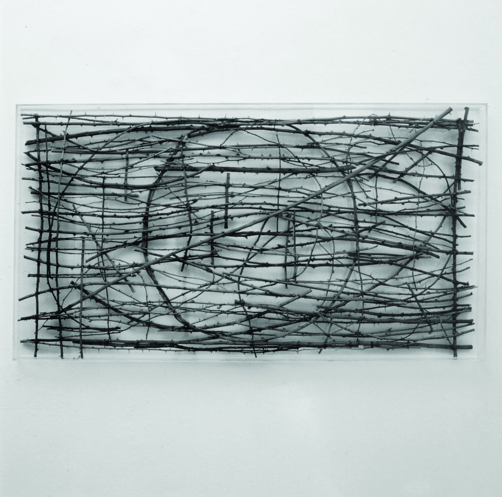 Some thresholds made by Schubert in the late 1970s seem to suggest strongly ritualistic uses—such as her Untitled (Doormat) (Bez naziva [Otirač]) (1979), fashioned by weaving the branches of a wild rose. With its thorns, this briary screen is more of a ritualistic object or even a form of defense than a marker of welcome or the kind of mat with which one might shake off the dust and dirt of the outside world. Edita Schubert’s thorny doormat belongs to a body of works made by twisting, knotting, and weaving untreated natural materials like birch and willow branches into forms that sometimes resemble fences or boundary markers. Other artworks take the form of simple arrangements of twigs and leaves, or collections of natural materials including bone, petals, spices, and ash contained within birch twig circles. When exhibited in the Studio of the Gallery of Contemporary Art in Zagreb in 1980, these works were described by Marijan Susovski as inducing “kinesthetic feelings in the spectator, feelings of ritual acts, operations carried out, associations with the killed, tamed or collected. These are brutal still lifes.” He continued to describe them as “reminders of human presence, of cultivation of nature, and traces of residence … conveying … feelings of tragedy and of nostalgic romance for something unknown, primordial”.14 Indeed, perhaps these objects point to the ancestral beliefs that archaeologists, ethnographers, and folklore scholars of Eastern Europe have traced in enduring rituals, symbols, and apotropaic magic: bones and seeds hidden under the hearths and doorways of medieval homes on the Dalmatian coast for supernatural protection, and ritual and medicinal uses of rose petals, herbs, and many other plants in the same territory today, often absorbed into Roman Catholic rites.15 Socialist modernity had not extinguished these “primitive” beliefs, as numerous Yugoslav ethnographers attested.16 Indeed, Schubert’s ritual objects—described by Susovski as self-consciously “poor” (siromašan)—were created at the high-water mark of Yugoslav ambition, when progress was measured in terms of the length of new highways and the number of new public facilities like universities, hotels, and hospitals. Susovski felt that Schubert’s art—exhibited under the laconic title Radovi / Works in the Studio of the Gallery of Contemporary Art—suggested “ritual acts” conducted elsewhere.