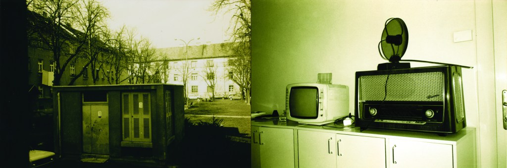 It was a late project called My Apartment (Moj stan) (1999) that brought a new and rather different set of associations of liminality to Schubert’s practice. In March 1999, she arranged for viewing devices to be placed inside the windows of eleven small shops and cafes in the vicinity of Cvjetni trg (Flower Square) in central Zagreb and sent out invitations to individuals to view the work. Small Styrofoam blocks with two viewing lenses and slides were placed at eye level in each window, interrupting the displays of books in one store, cosmetics in another, baby-care products in a third, and so on. The device looked a little like a variant of stereoscope viewers developed in the late nineteenth century which, by exploiting the phenomenon of binocular vision, gave their users the illusion of spatial depth. An individual viewing experience, stereoscopes offered an intimate and safe illusion of distant worlds from the comfort of home. Perhaps this is what Schubert’s viewers expected when they approached, pressing their faces close to the shop and caf. windows—an impression that surely seemed absurd to those passing by. Instead, what they experienced was what might be called ocular dissonance. Rather than seeing twin images cohere, they were presented with an image of the interior of Schubert’s own apartment on the ground floor of Petrova Street in one viewing lens, and with the view from the window of that same apartment into the square outside in the other lens. Populated with parked cars and garbage bins, it was an entirely unremarkable location. Each shop or cafe window hosted a different pair of images, but always of the interior and exterior of her home. With their faces pressed to glass, the viewers were transported from one ordinary setting— the streets around Flower Square—to another: Schubert’s own two-room flat.