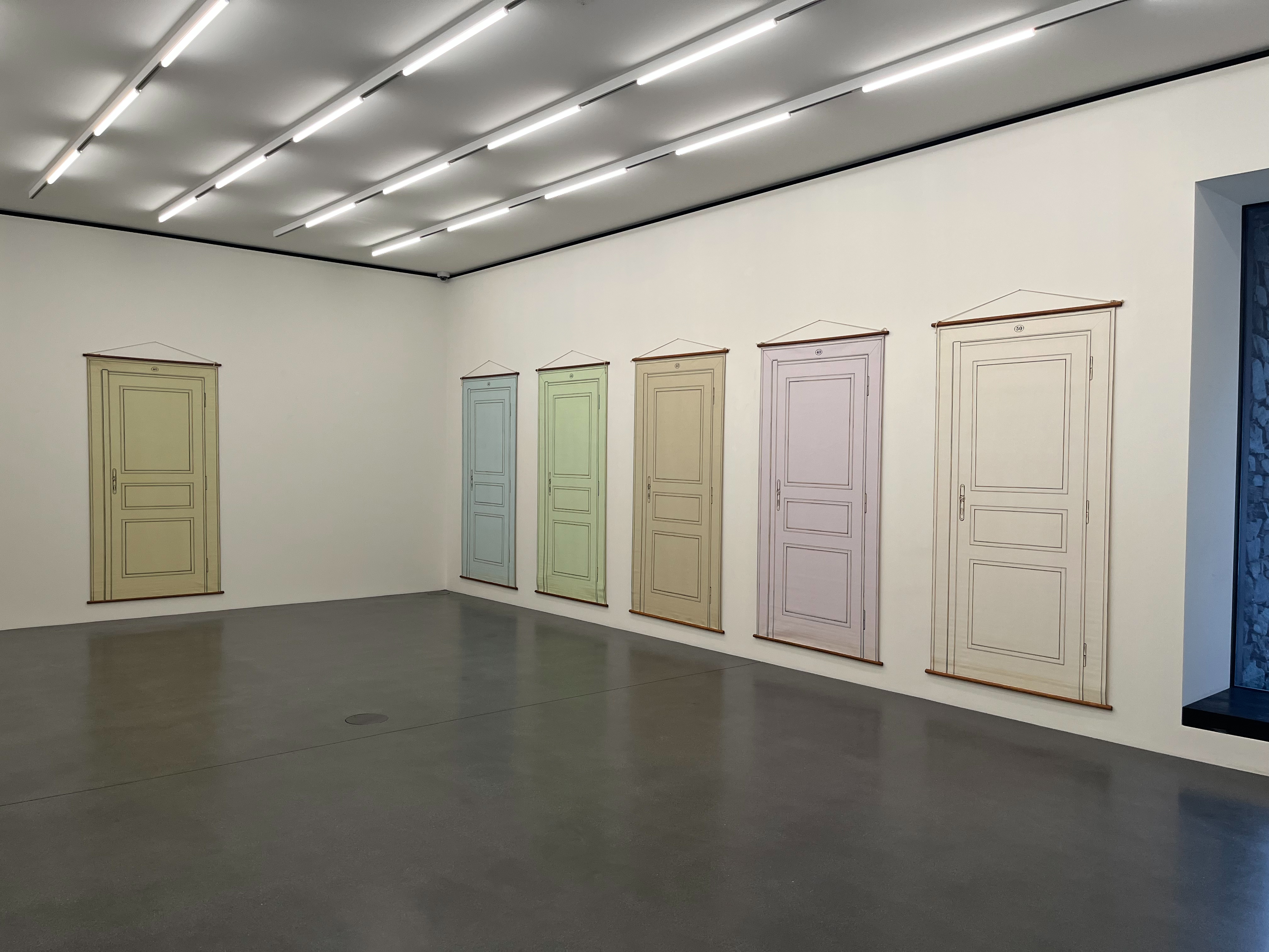 In November 1978, an exhibition of Edita Schubert’s new paintings was held at the Students’ Center Gallery in Zagreb. At least sixteen near-identical canvases titled Doorway (Vrata) signaled an interest in architectural spaces.1 Each took the form of a life-size image of a door. The only distinctions between the paintings were variations in hue (some more gray, others pinkish white or watery blue) and in the number plate on each door, which Schubert traced out in crisp lines of black acrylic paint. Hanging on strings on the whitewashed brick walls of the gallery, these identical doors presented the impression of the hallway of an institution— perhaps an office, hotel, or even a jail. Evidently leading nowhere, they stood in contrast to the equally utilitarian but real door in the gallery, which also bore a number plate. Artist and critic Željko Kipke later described this congregation of doors as a “sealed system” (zakopčani sustav).2